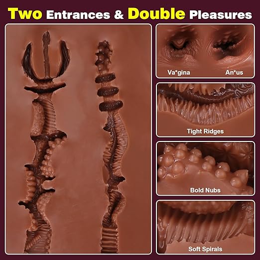 - Realistic Pussy & Anal : The realistic masturbator features a vaginal tunnel with a depth of 6.7 inches/17 cm and an anal tunnel with a depth of 5.5 inches/14 cm, fitting all sizes.The inner wall of the vaginal tunnel is lined with annular soft ridges and delicate nubs, which deliver tight gripping and friction. The anal tunnel features dynamic spiral ribbed design mimicking natural rhythmic movements of the human body, delivering a layered and progressive sensory experience.10.6 LB Realistic Sex Dolls.