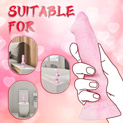 7″Beginner Dog Knot Small Dildo,Realistic Silicone Animal Dildo With Strong Suction Cup, Fantasy Monster Colorful Creature Thin Pink Dildos, Wolf Penis Anal Plug Sex Toy For Women.