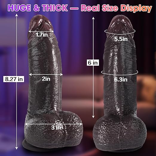 • Large Size & Naturally Curved Design: With 8.27 inches in total length (6 inches insertable) and a 2-inch diameter, this realistic girthy dildo offers a deeply fulfilling and stretching experience. Its naturally curved dildo, flexible shaft moves with your body to reach the G-spot or P-spot. Ideal for intermediate to advanced users, or anyone who enjoys a girthy, hands-free toy for solo or couples’ pleasure.8.3 Thick Black Thrusting Dildo.